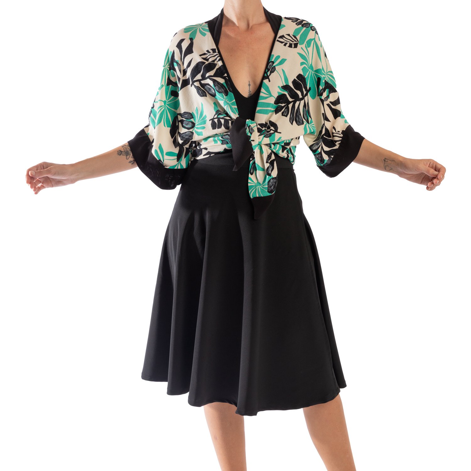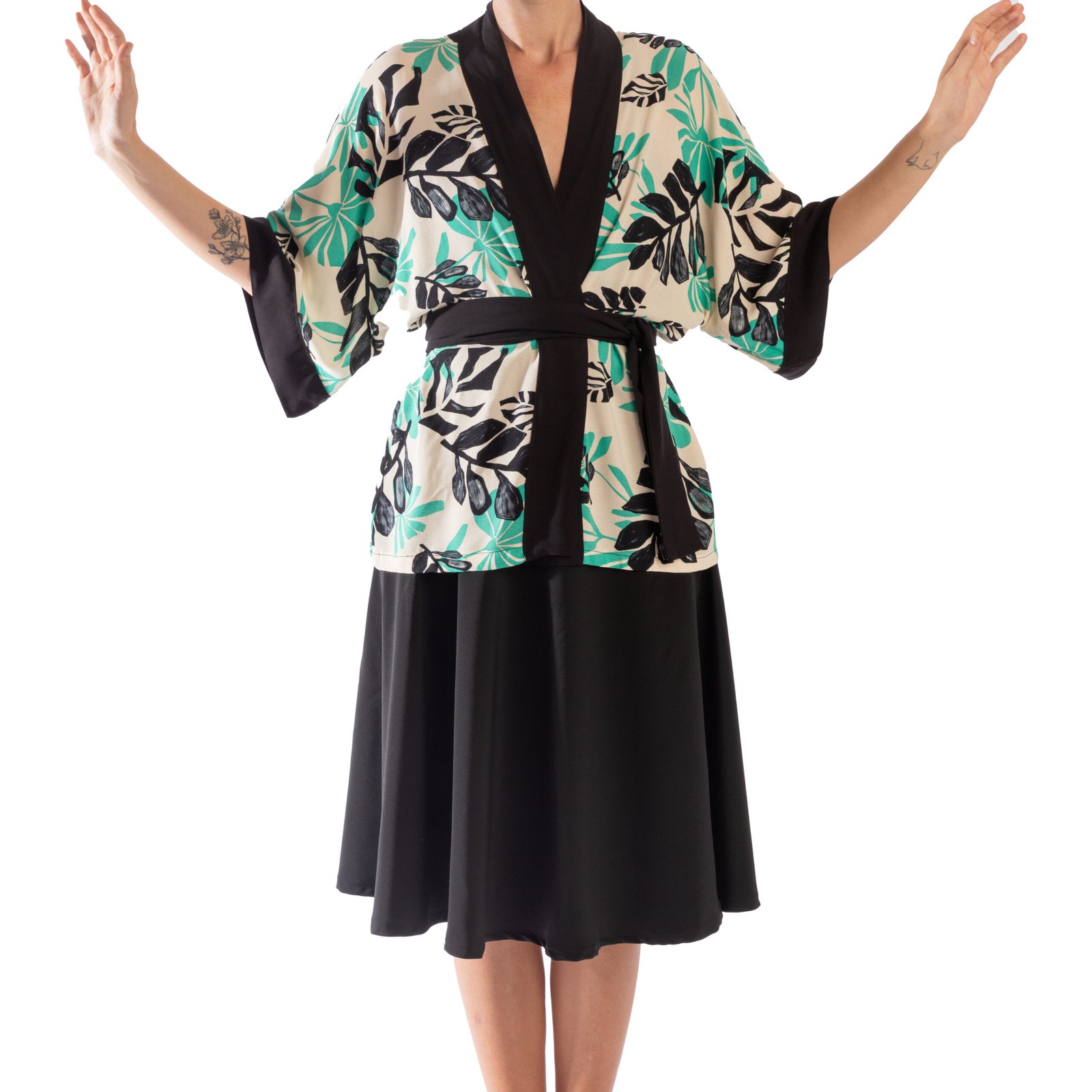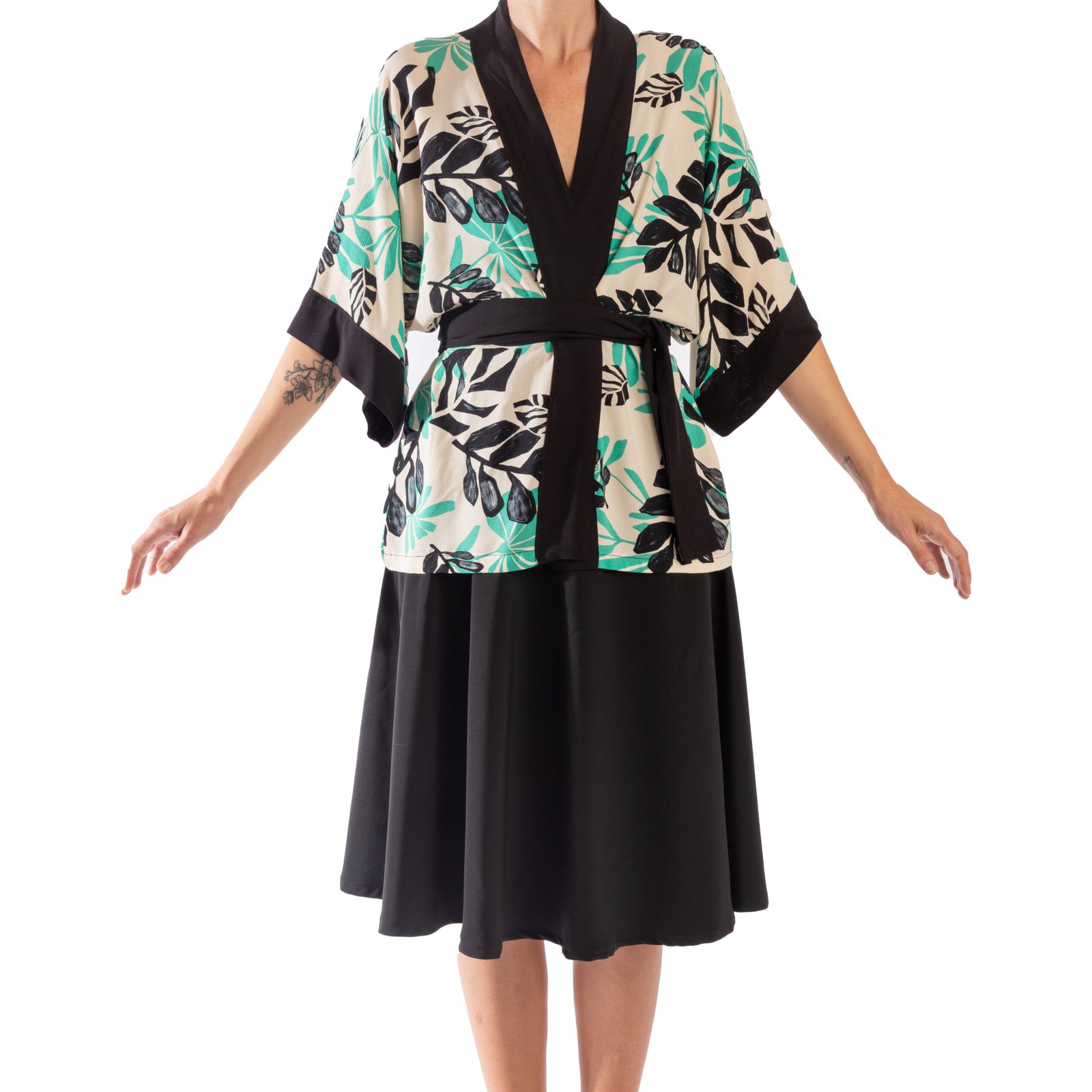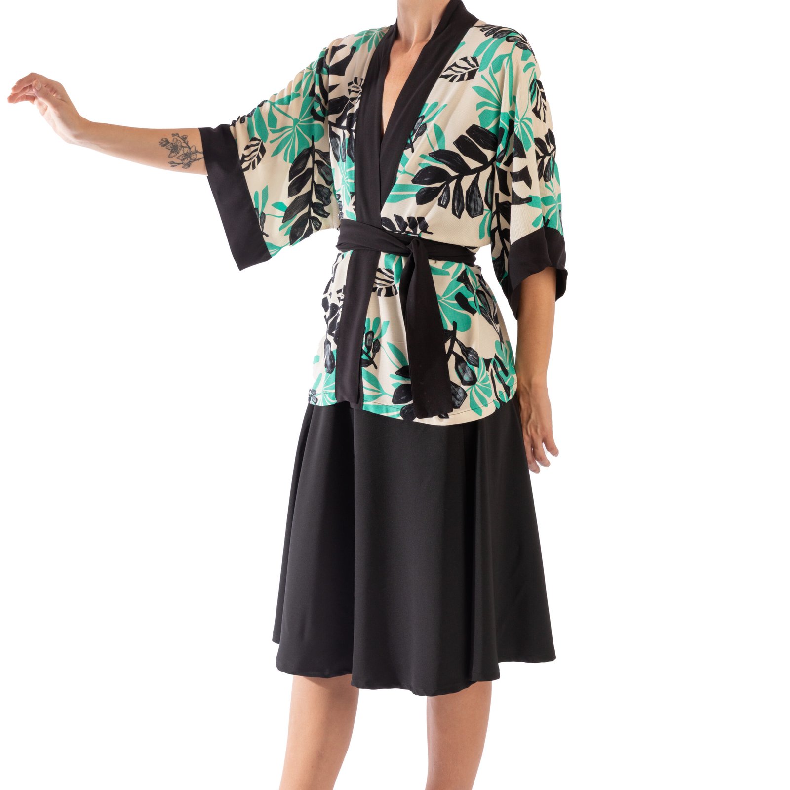 Kimono camisero flores verde y negro